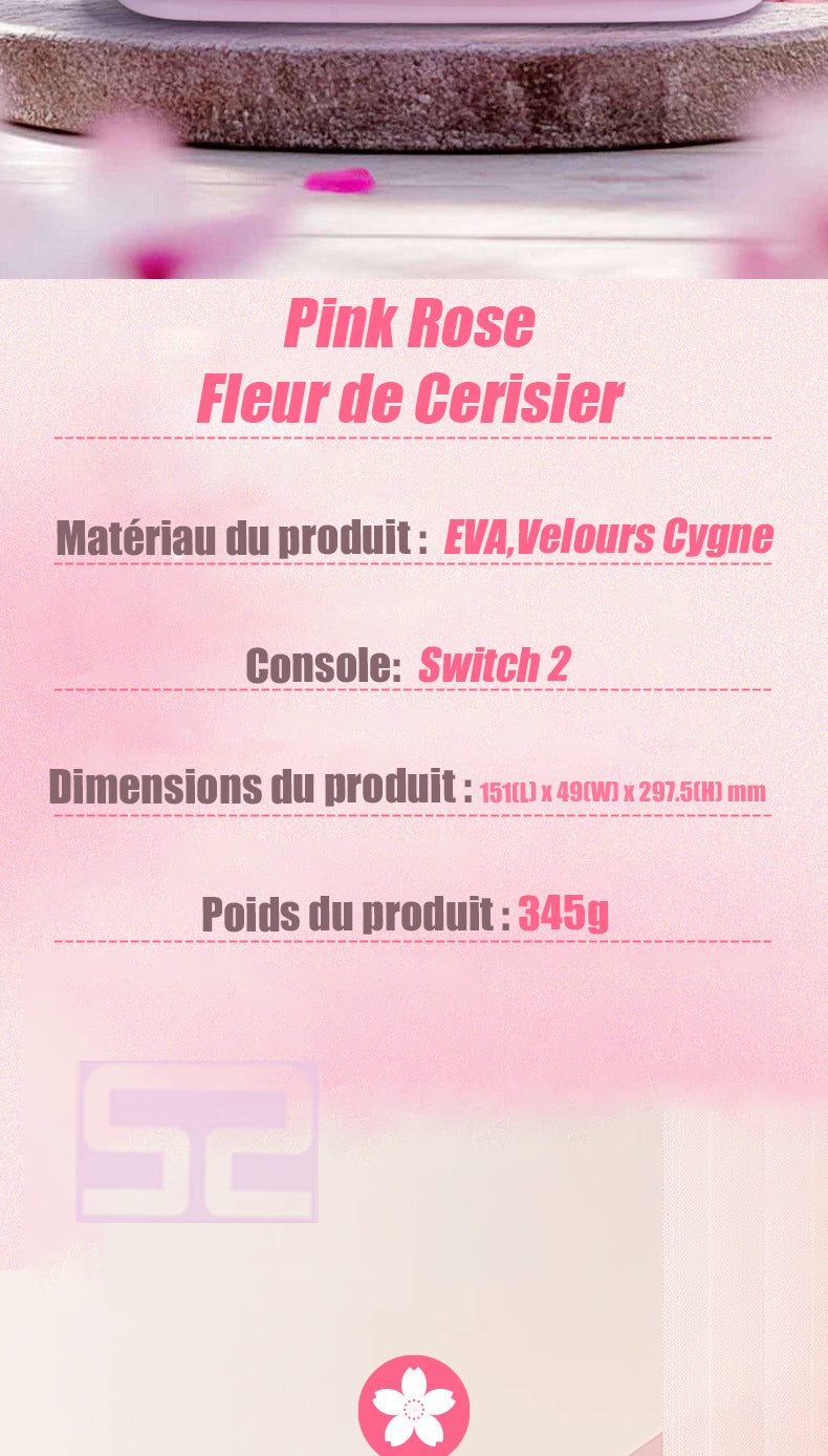 Succombez au charme de notre magnifique sacoche de protection pour SWITCH 2, ornée d'un délicat thème Fleurs de Cerisier dans une teinte rose poudré envoûtante. Cette coque rigide en EVA et velours n'est pas seulement élégante : elle offre une protection antichoc et anti-pression supérieure, préservant impeccablement votre console et ses joysticks. Son intérieur astucieusement compartimenté garantit un rangement parfaitement organisé, tandis que sa matière déperlante assure la sécurité de votre appareil. Emportez votre console avec style et sérénité grâce à sa dragonne et sa bandoulière assorties, pour une touche de féminité à chaque déplacement.