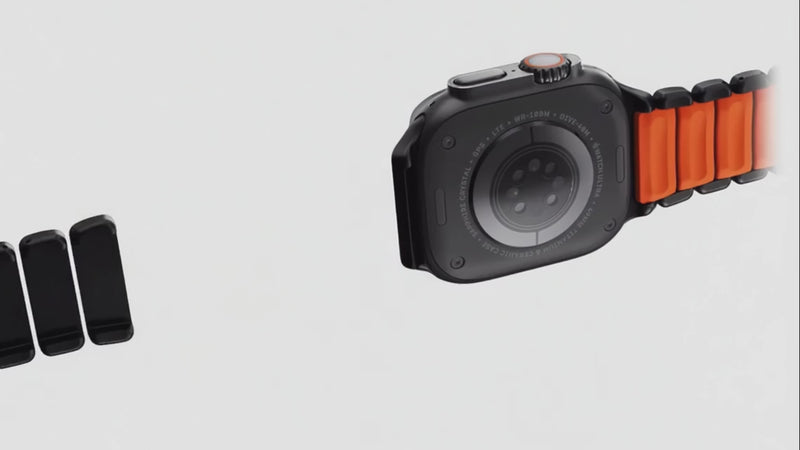 Grâce à ses maillons arrondis en titane et sa finition mate, le bracelet REMPART fusionne idéalement avec l'Apple Watch Ultra.